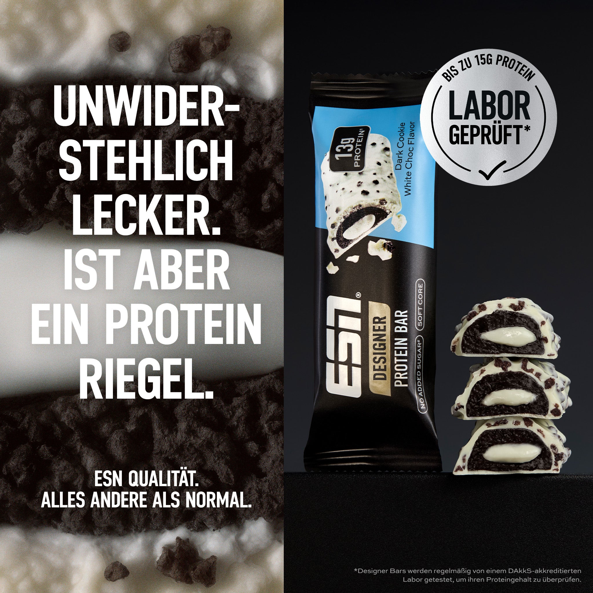 Protein power in every bite: Designer Protein Bar. Mit diesem Proteinriegel haben wir das Riegel-Game neu definiert: Mit unwiderstehlichem Geschmack, voller Protein-Power und ganz ohne den Zusatz von Zucker wird unser Protein Bar zum perfekten Protein Snack für Athletes, Ernährungsbewusste und alle, die Schokoriegel lieben.1