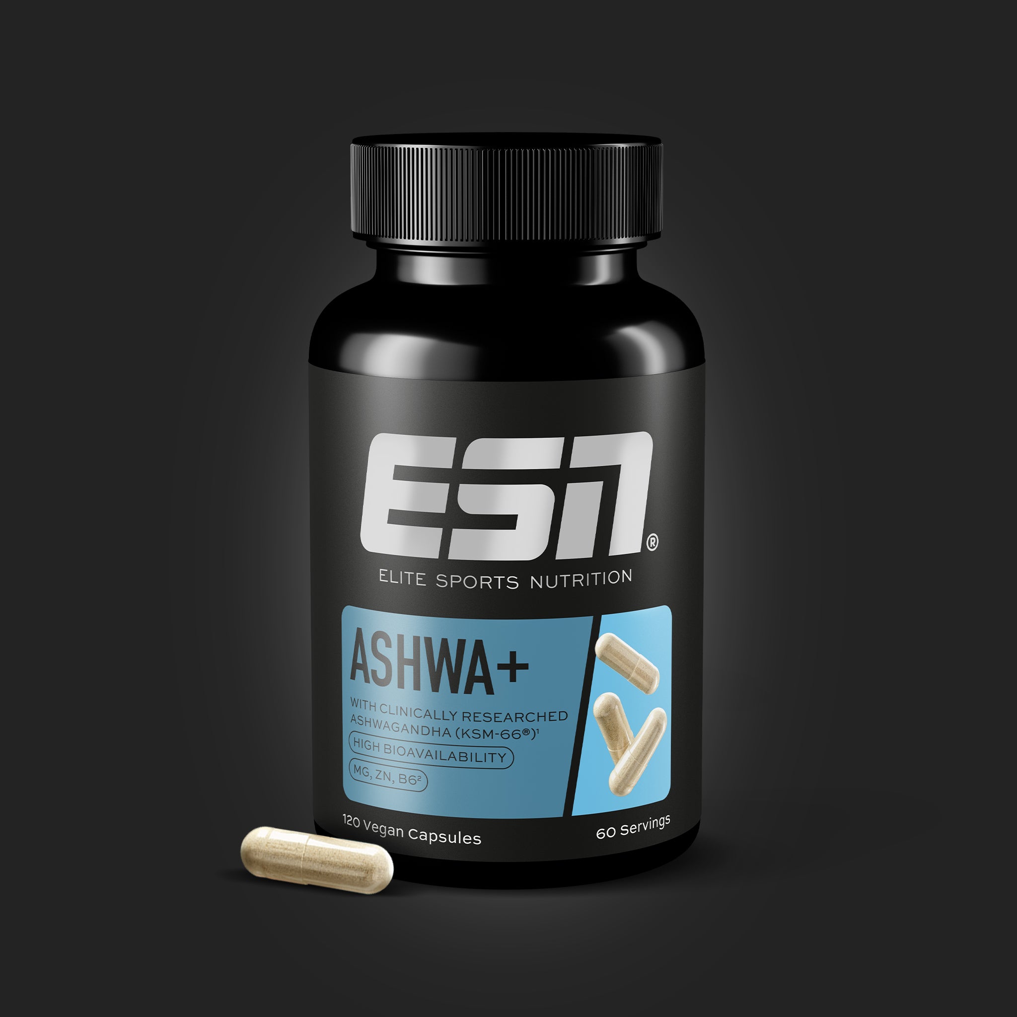 Antioxidative stress control – mit unserem Ashwa+. Wir haben patentiertes Ashwagandha (KSM-66®) mit Anti-Stress-Nährstoffen für mentale Balance und Zellschutz kombiniert.1,2,3 Der ideale Support, den du bei harten Workouts oder einem stressigen Alltag brauchst.