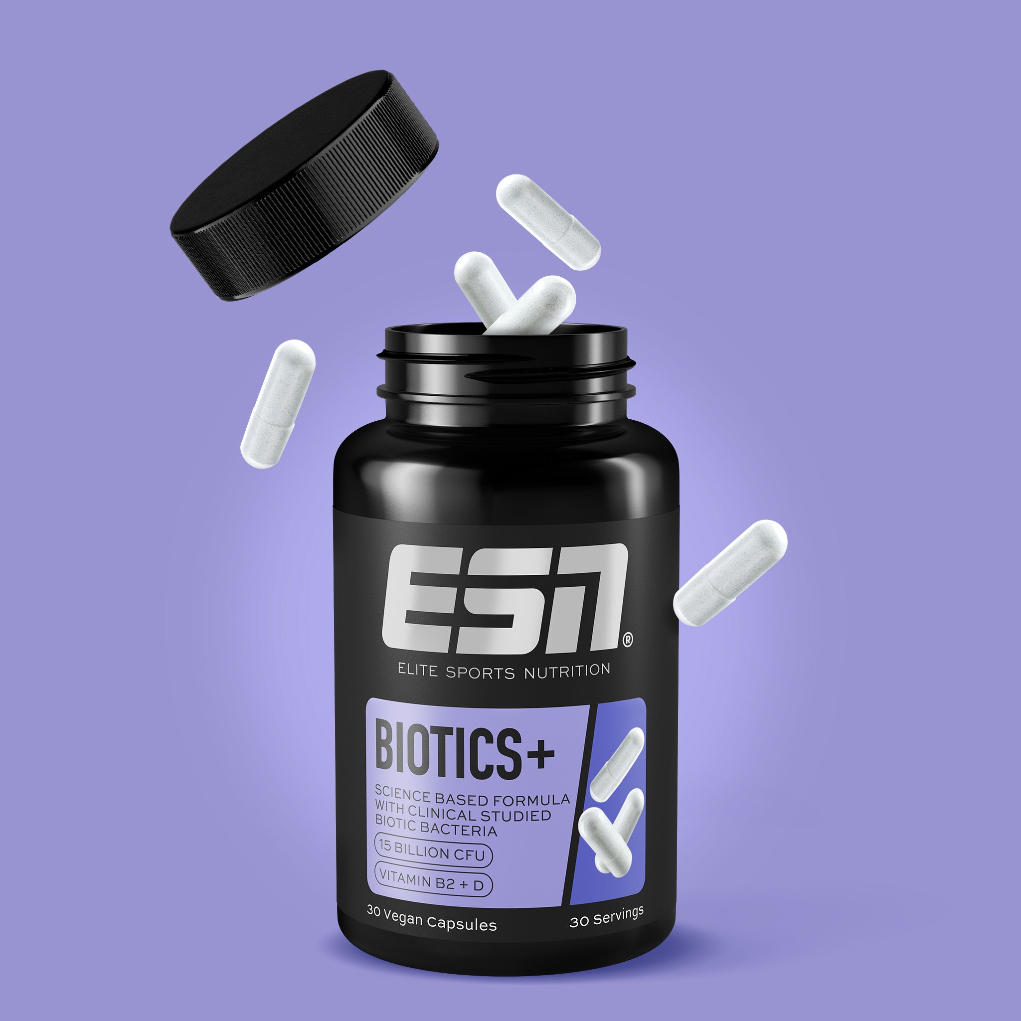 Strong combination: Biotics+ ist ein hochdosierter Bakterien-Komplex sinnvoll kombiniert mit Vitamin B2 und Vitamin D und entwickelt mit einem der weltbesten Probiotika-Forscher. Die enthaltene Vitamin-Kombi unterstützt dich mit voller Power, indem sie zur Verringerung von Müdigkeit und Ermüdung, zur normalen Funktion des Immunsystems, zu einem normalen Energiestoffwechsel und zur Erhaltung der Darmschleimhaut beiträgt. 12