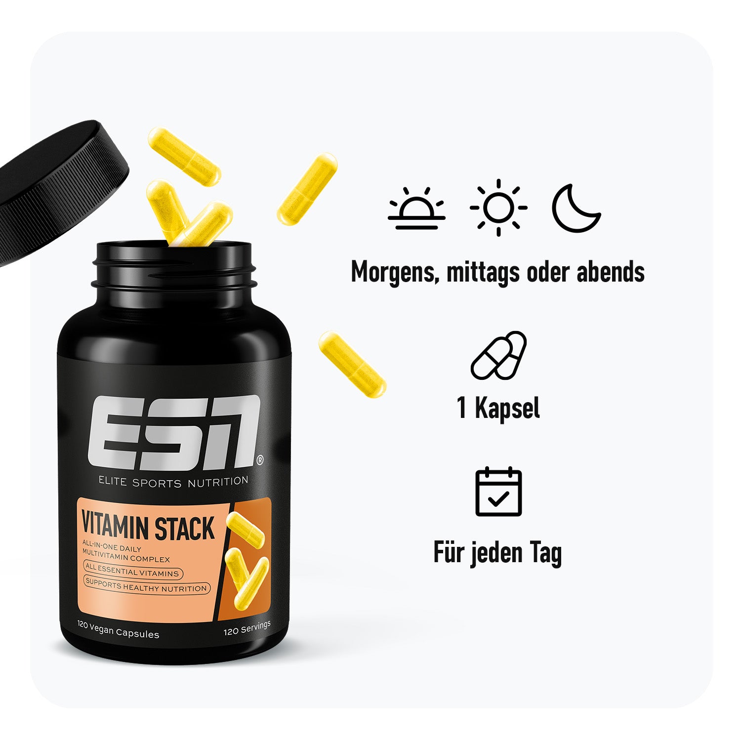 Besonders als Athlete benötigt dein Körper aufgrund der gesteigerten körperlichen Beanspruchung und des insgesamt höheren Nährstoffbedarfs eine verstärkte Zufuhr von Vitaminen. Aber auch ein stressiger Job oder Alltag und eine unzureichende Aufnahme von Vitaminen durch die Ernährung können eine schlechte Vitaminversorgung deines Körpers bedeuten und dadurch gesundheitliche Nachteile mit sich bringen. Ergo: Eine ausreichende Vitaminversorgung ist für jeden wichtig. Die gute Nachricht: Damit du dir über deine Versorgung weniger Gedanken machen musst, haben wir uns Gedanken gemacht und die optimale Lösung gefunden: Vitamin Stack – dein täglicher Multivitamin-Kick.