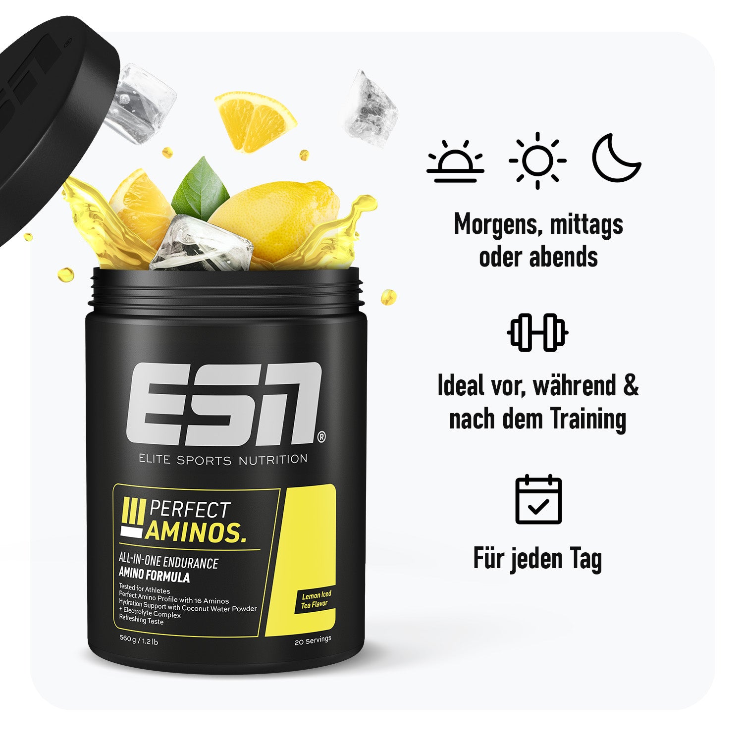 Perfect your performance – mit unseren Perfect Aminos. Die durchdachte Amino Formula mit perfektem Aminosäurenprofil, Elektrolyt-Komplex sowie Vitamin B6 und mehr bietet dir den Allround-Support, den du für optimale Performance, Regeneration und Hydration brauchst.1 Perfekt für alle Ausdauer-Athletes!