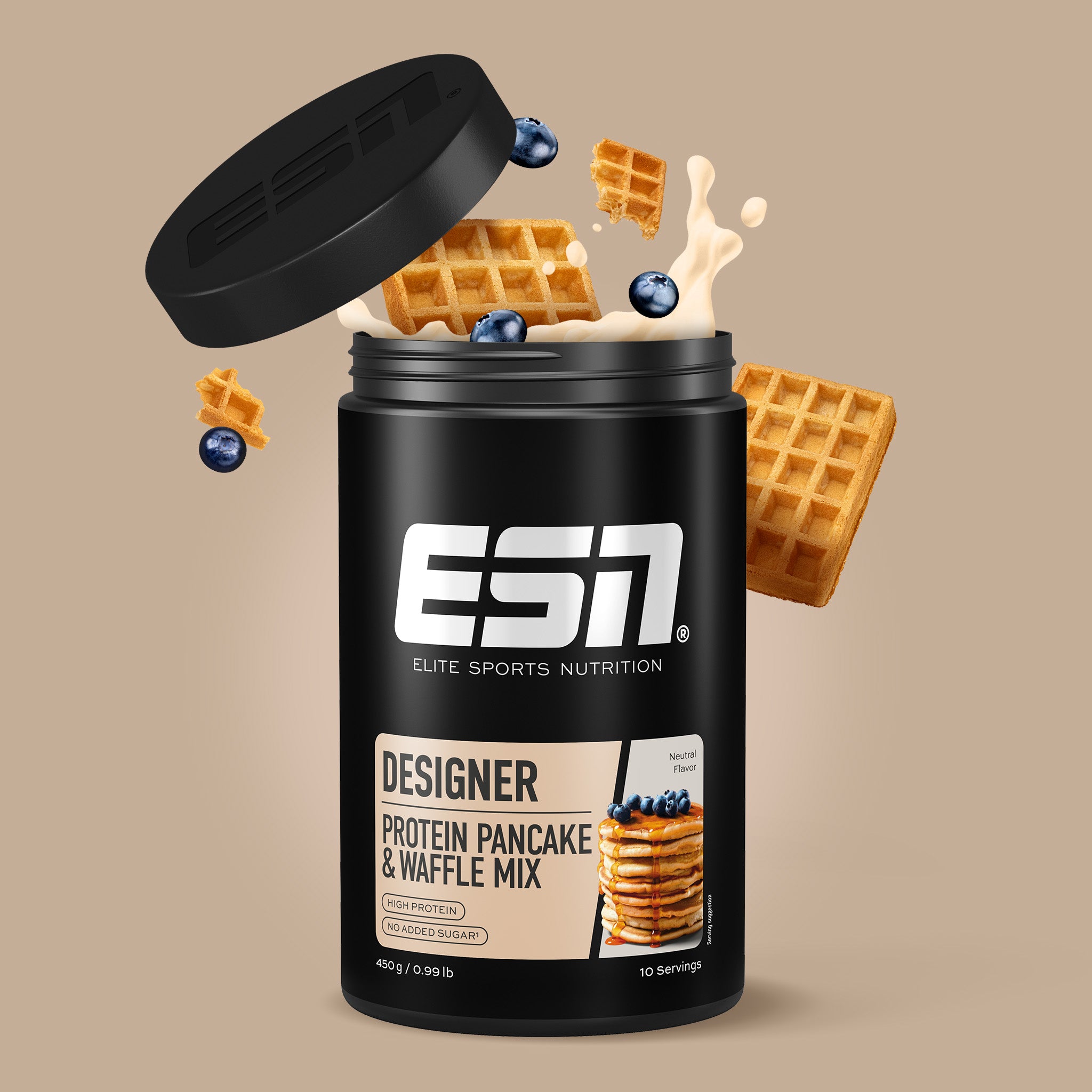 Milk protein concentrate 54%, wheat flour, chicken egg white powder, whole egg powder, raising agent(sodium bicarbonate), acidifier (citric acid), flavouring. Origin of ingredients: EU/non-EU.Protein Pancakes & Waffles Mix Key Facts