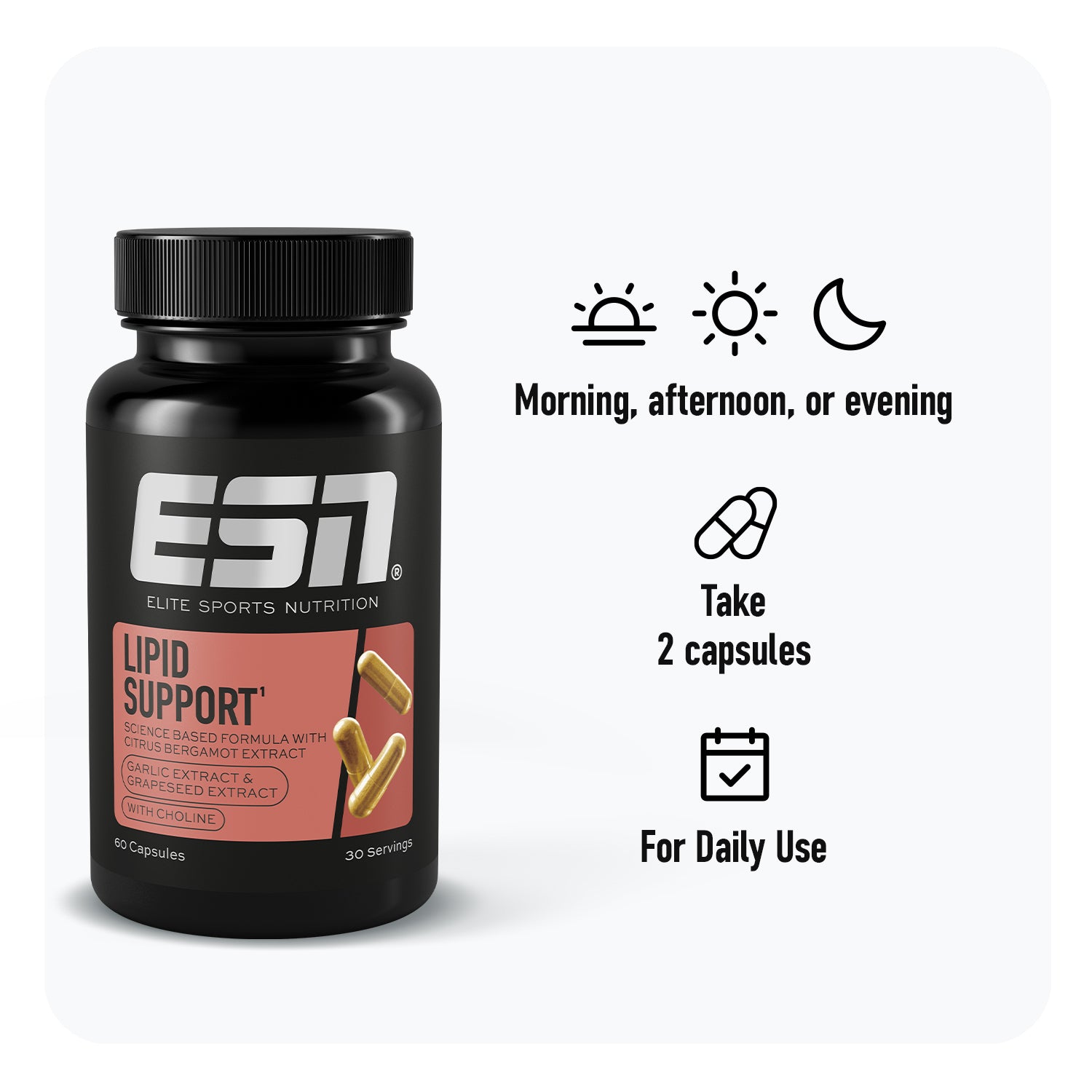 ESN Lipid Support combines plant extracts including bergamot and grape seed with the essential nutrients thiamine and choline, which are scientifically proven to support normal fat metabolism.